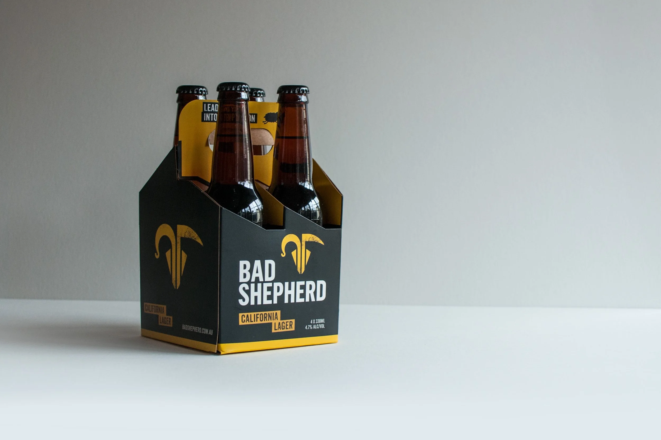 We created a brand identity inspired by their name, a logo that reflected the good and the bad. The Shepherds crook (the good) combined with a Grim Reaper scythe (the bad) come together to create a ram’s head. Beer so good, it’s has to be Bad (Shepherd).